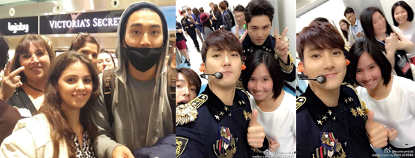 與來看自己的 粉絲親切的照相, 弄滑稽的表情, 還給予微笑。舞台上的崔始源是明星, 但粉絲們的鏡頭中的 崔始源是 愉快的 淘氣鬼少年。